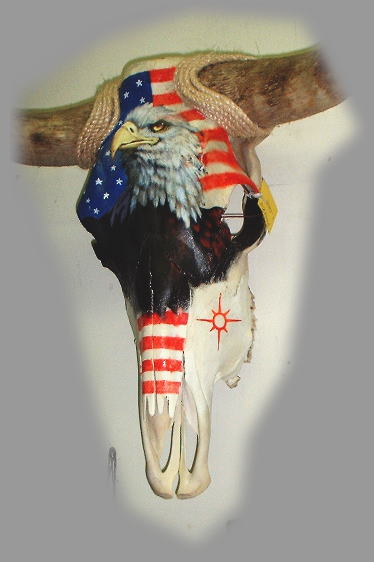 Flag and Eagle on a cow skull