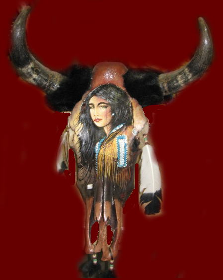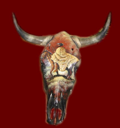 Indian art on cow skull or buffalo